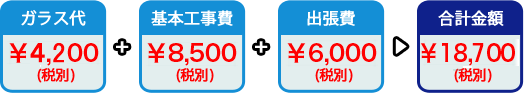 例:普通のガラス(透明3mm)90×90cmの場合の修理代金総額